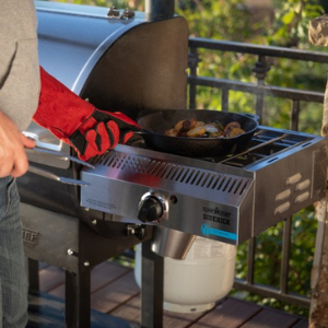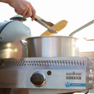Med den kraftfulla Sidekick-modulen förvandlar du din pelletsgrill till ett perfekt trädgårdskök. Gasgrillens modulära spis passar perfekt i stället för gavelbordet på Camp Chef Woodwind-grillarna. Den superkraftiga 8kW tvåradiga brännaren i gjuten aluminium gör att du kan förbereda en maträtt i vilken volym som helst, även med en hink. I kombination med en pelletsgrill är det inte längre utom räckhåll att göra någon produkt på professionell nivå!