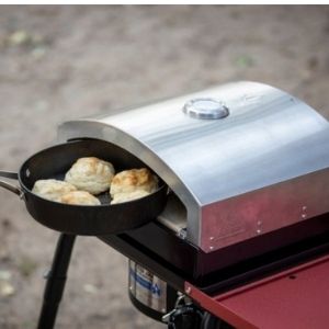 Camp Chef Outdoor Pizza Module är gjord av emaljerat stål, kupolen är av rostfritt stål och den har en fantastisk keramisk pizzasten. Modulen lämpar sig för att laga pizza, bröd eller tårta, samt för att laga fisk eller till och med kötträtter i en gjutjärnsstekpanna. Ugnskupolens insida reflekterar värmen tillbaka och därmed uppnås värmefördelning liknande en tegelugn. Det finns en temperatursensor i locket. smaklig måltid!