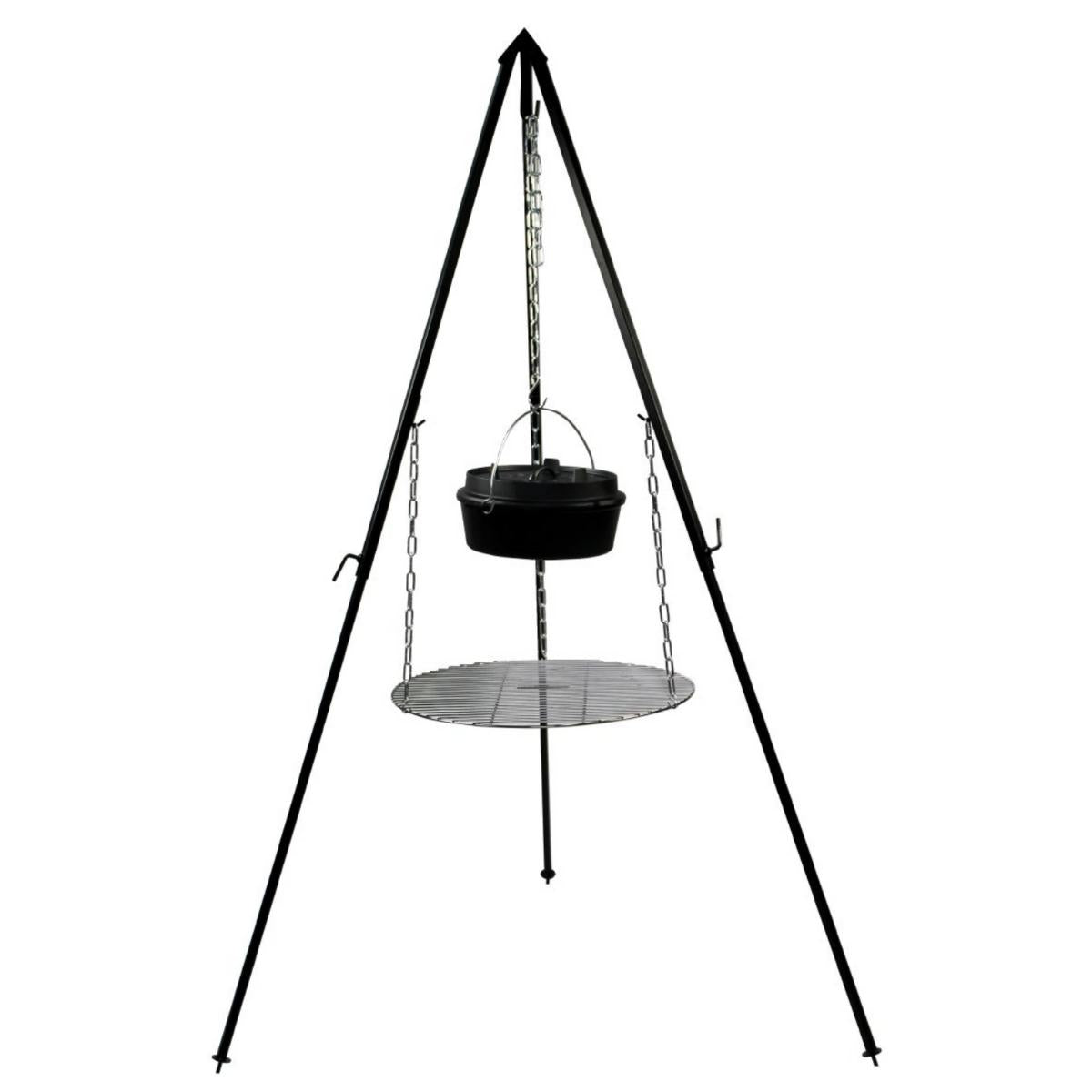 VALHAL lägereldsställ för gjutjärnsgrytor och grillgaller (justerbart, med fyra kedjor)