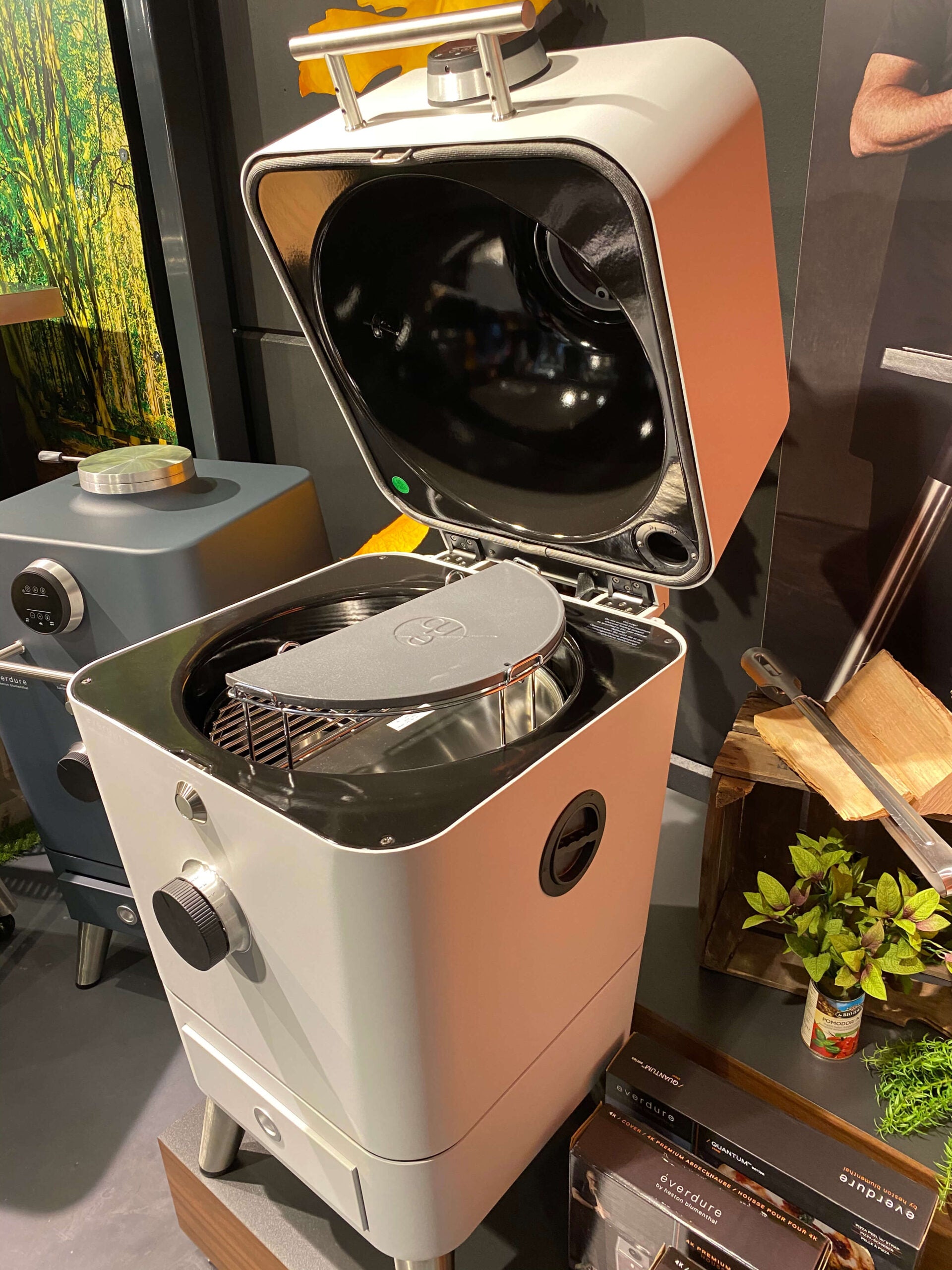 Unik grill i Kamado-stil med elektrisk tändning och termometrar
