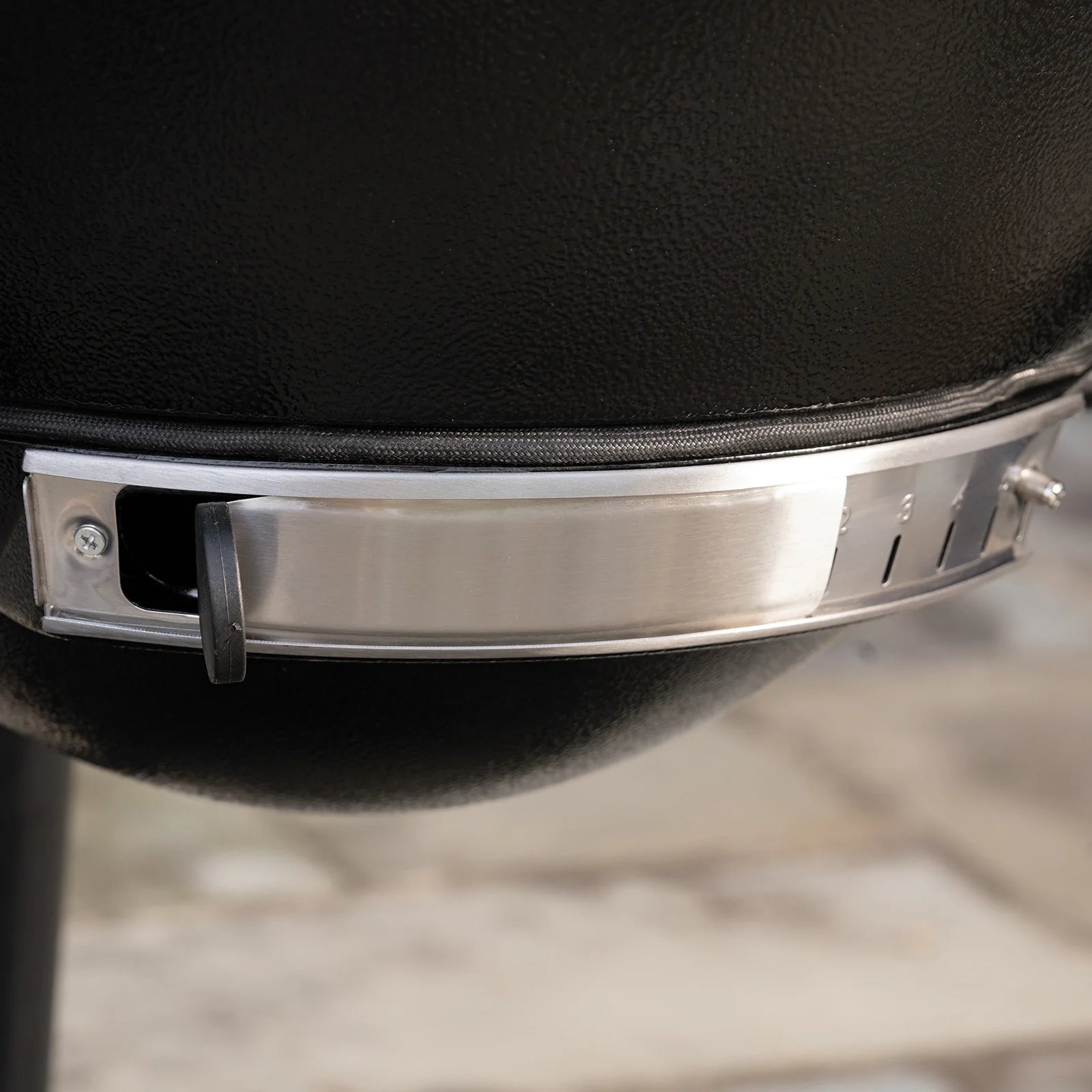 - Dubbla justerbara spjäll för att bibehålla önskad temperatur vid grillning eller rökning