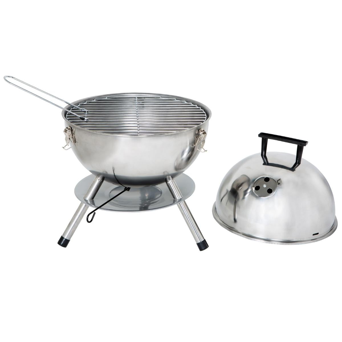 Tillverkad av tjockt & starkt rostfritt stål, med grillgaller, grillgallerlyftare och askfat.