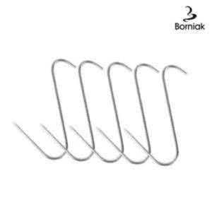 Rostfria, S-formade, asymmetriska upphängningskrokar med förlängt skaft är främst designade för att hänga upp skinka i rökkammaren. Kroken har en annan storlek S arch, vilket innebär att den kan användas på både galler och tvärbalkar. Hängande produkter säkerställer en jämnare rökfördelning i rökeriet och bättre utnyttjande av rökkammarens utrymme.