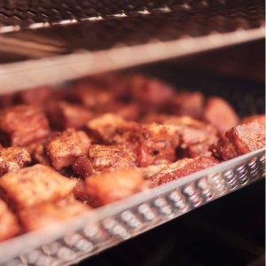 • GJORT AV ROSTFRITT STÅL: Polerad rostfri konstruktion och täta perforeringshål säkerställer jämn rök- och temperaturpenetrering för effektiv rökning.