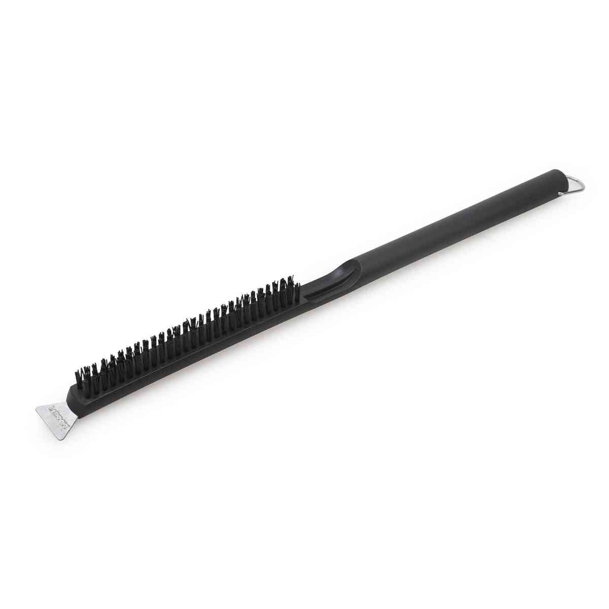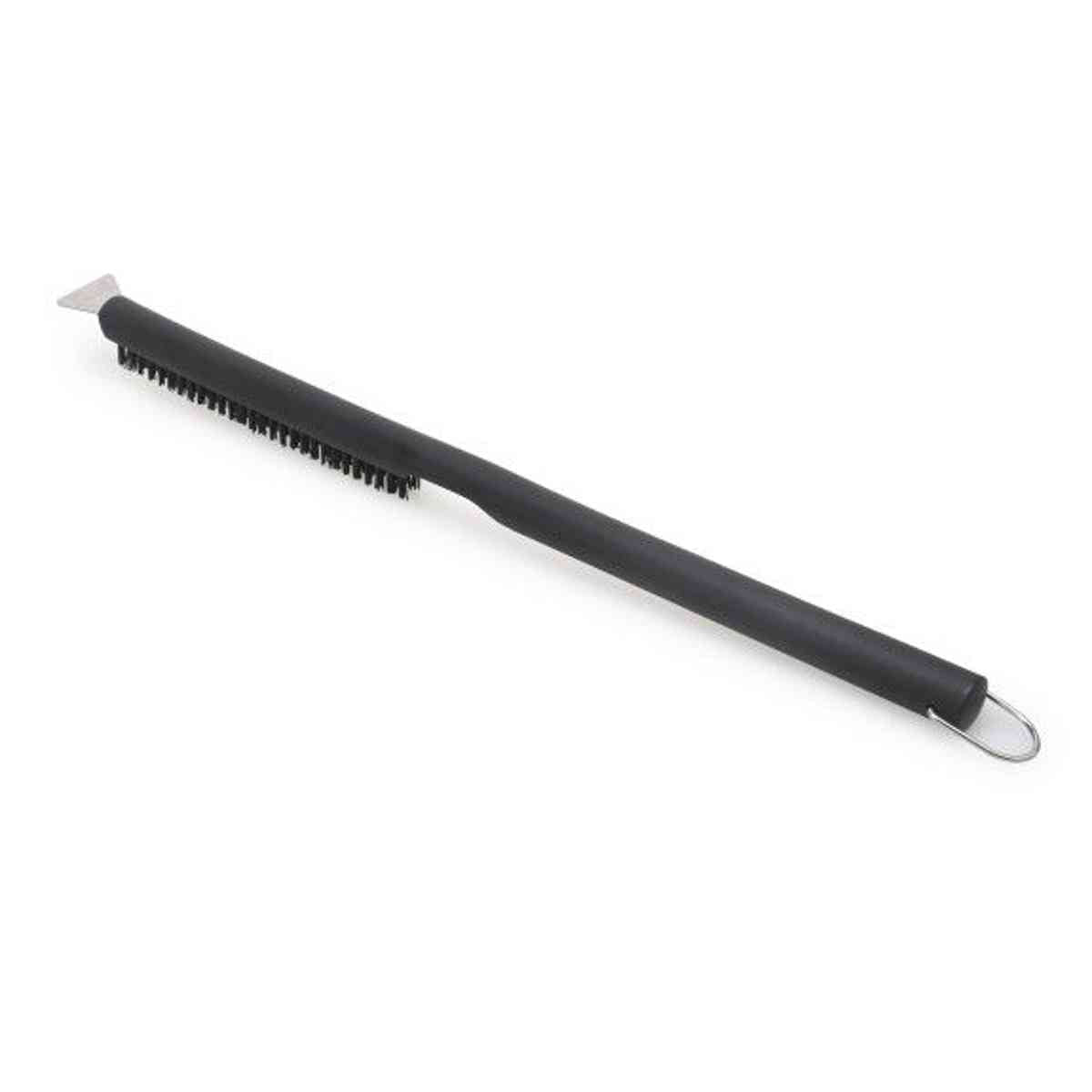 Det långa handtaget på rengöringsborsten gör att du kan nå djupt in i ugnen samtidigt som du håller händerna borta från värmen. Borsten är utrustad med en vinklad skrapa som effektivt tar bort även de mest envisa fastbrända resterna.