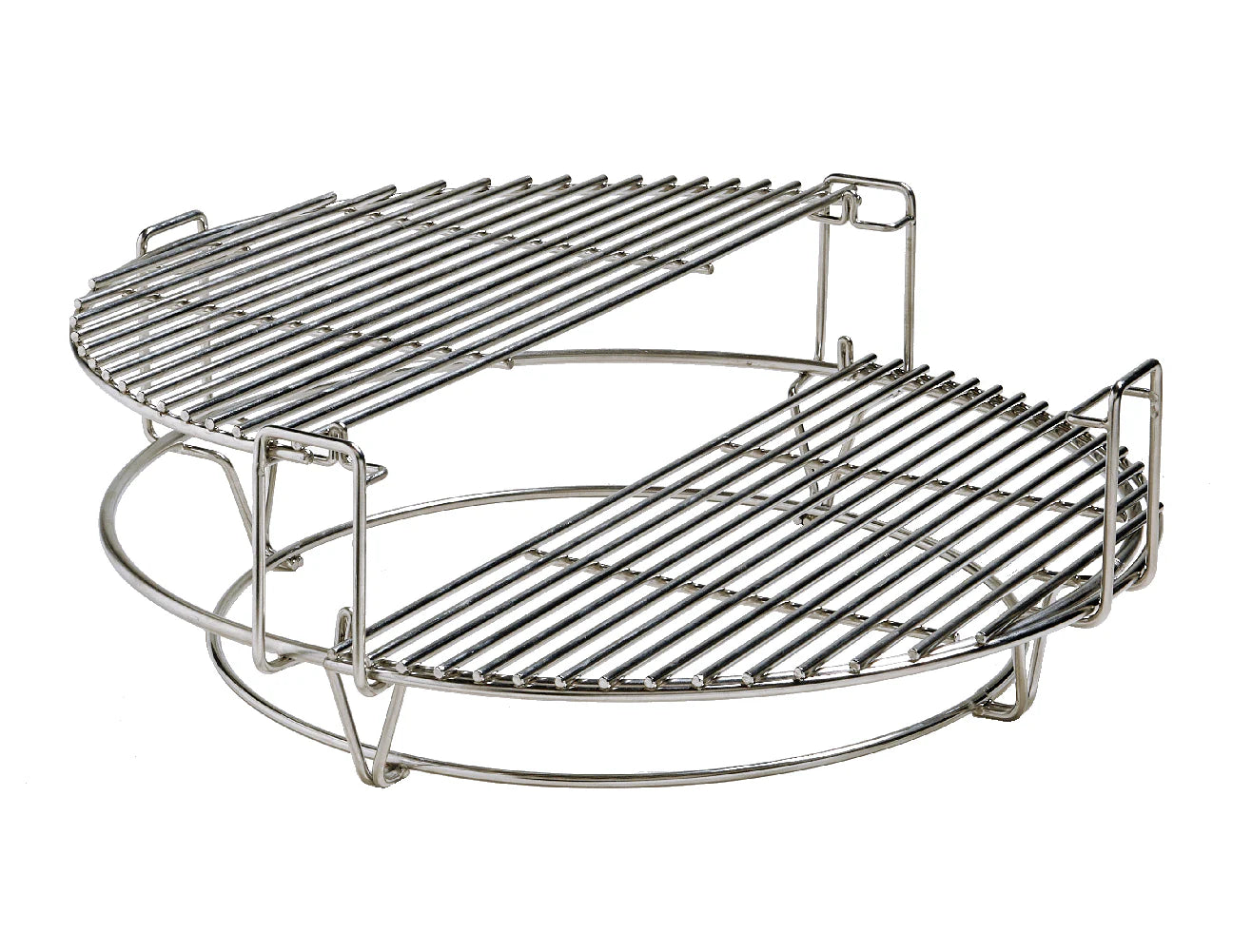 Det smarta och revolutionerande Flexible Cooking Rack Divide & Conquer flexibla matlagningssystem ersätter det vanliga grillgallret och ger flera ytor för mångsidig matlagning. Genom att använda ett halvt ställningskoncept, där alla komponenter är halverade, blir det möjligt att tillaga olika maträtter i flera nivåer och på flera olika ytor, så att du kan tillaga olika maträtter vid olika temperaturer. De tvådelade grillgallren och ställningen i flera nivåer ger dig tre stora fördelar jämfört med ett vanligt grillgaller.