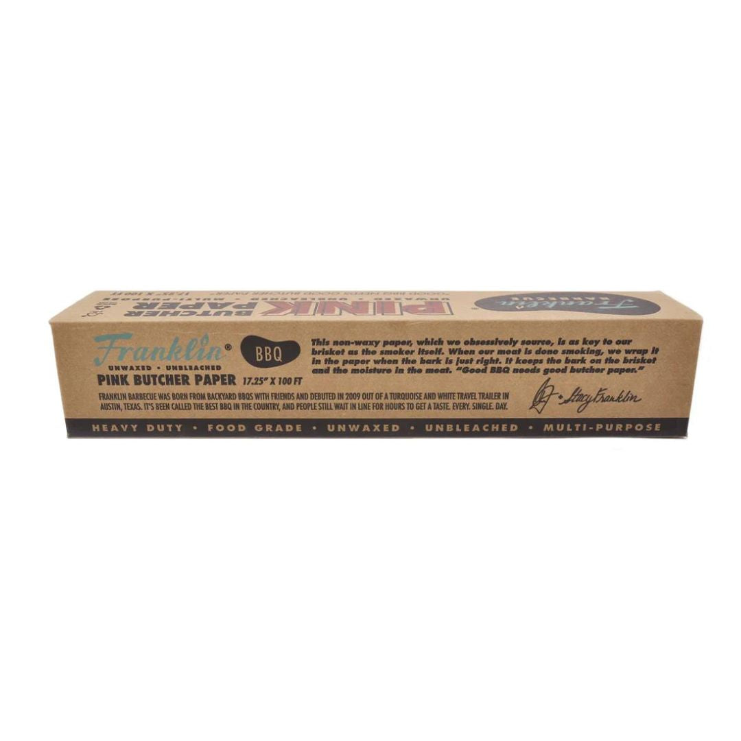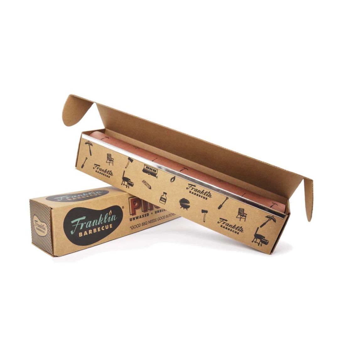 Bröd behöver smör, salt behöver peppar och bra bringa (d.v.s. nötkött) behöver bra slaktpapper, d.v.s. köttpapper. Här är en hemlighet: detta specialdesignade icke-vaxade papper är lika viktigt för bröstet som själva grillugnen. När köttet är färdigstekt lindar du in det i papper och sätter tillbaka det i ugnen. Detta håller skorpan på bringan och fukten i köttet samtidigt som köttet mörar. Servera sedan köttet på en bricka täckt med Franklin BBQ-slaktpapper – för vad skulle du annars äta på? Verkligen på en tallrik?