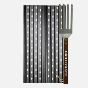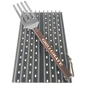 GrillGrate är ett viktigt tillbehör till din grill. Oavsett om du placerar dem över befintliga galler på din gas-, kol- eller pelletsgrill, eller använder dem för att ersätta fabriksgallren, kommer GrillGrate att få din gamla grill att se bättre ut än ny. Tillverkad av hårdanodiserad aluminium, rostar aldrig. GrillGrates är roterbara, sammankopplade paneler som ger dig två grillytor i en. Jämna ut de varma och kalla ställena och säg adjö till flare-ups med GrillGrates. GrillGrates gör alla till en bättre, snabbare och mer självsäker kock. Hårdanodiserad aluminium och upphöjd rälsdesign främjar ledning och kontroll för saftigare och godare mat. Steakhouse kvalitetsbrynmärken, garanterat!
