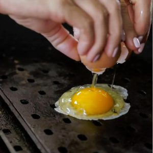 Två-i-ett yta; Skenorna upp för traditionell grillning och den platta sidan för grillning av rotfrukter. Den ersätter även grillplattan, så att du till och med kan steka ett ägg där.