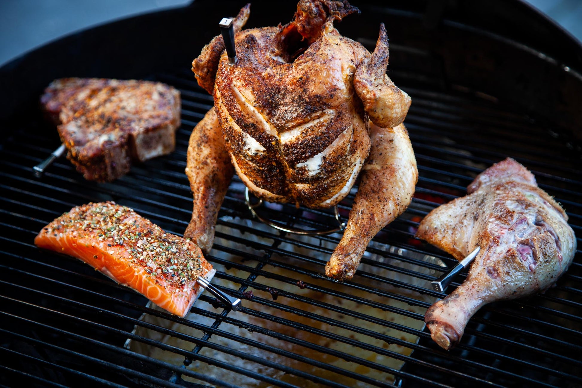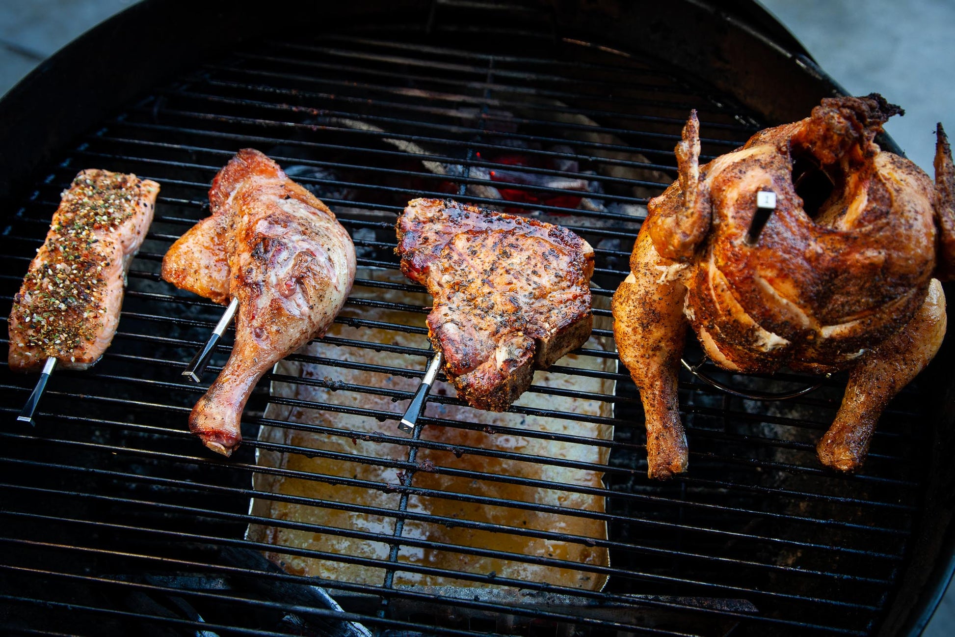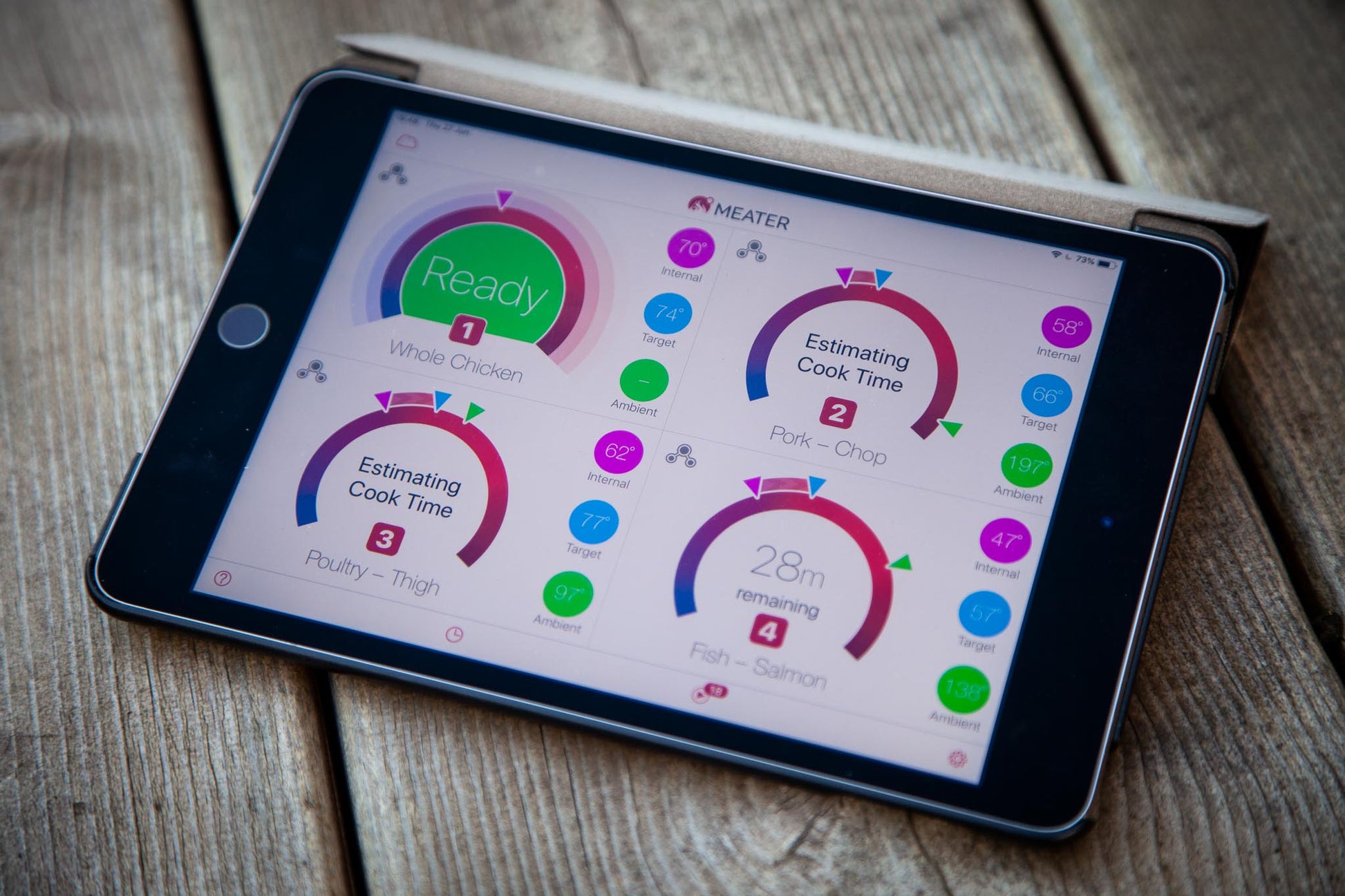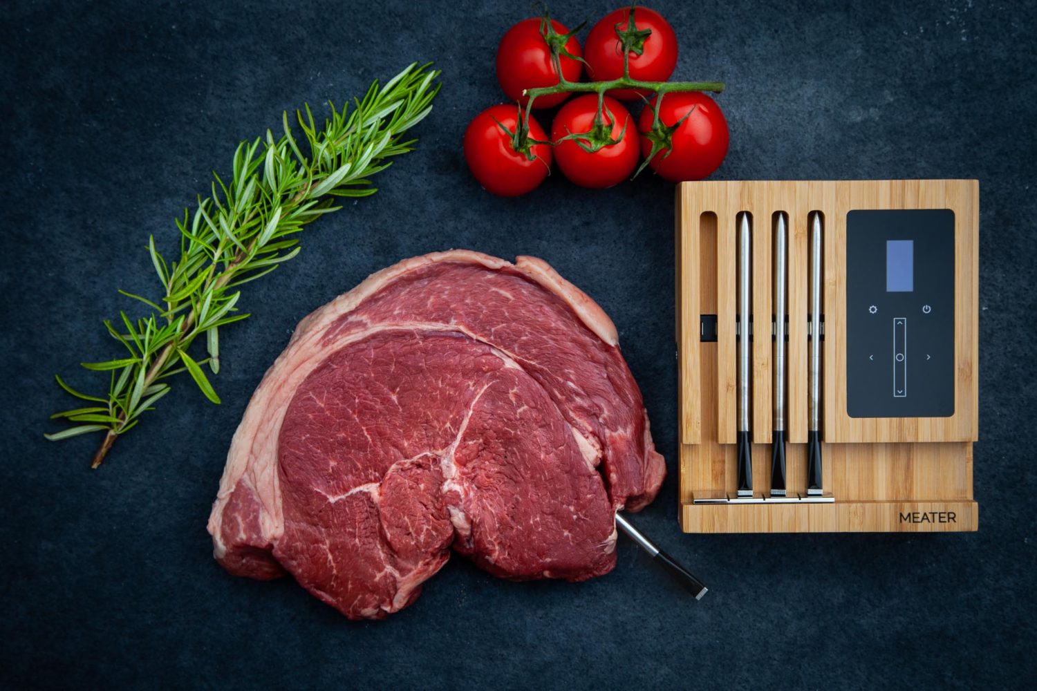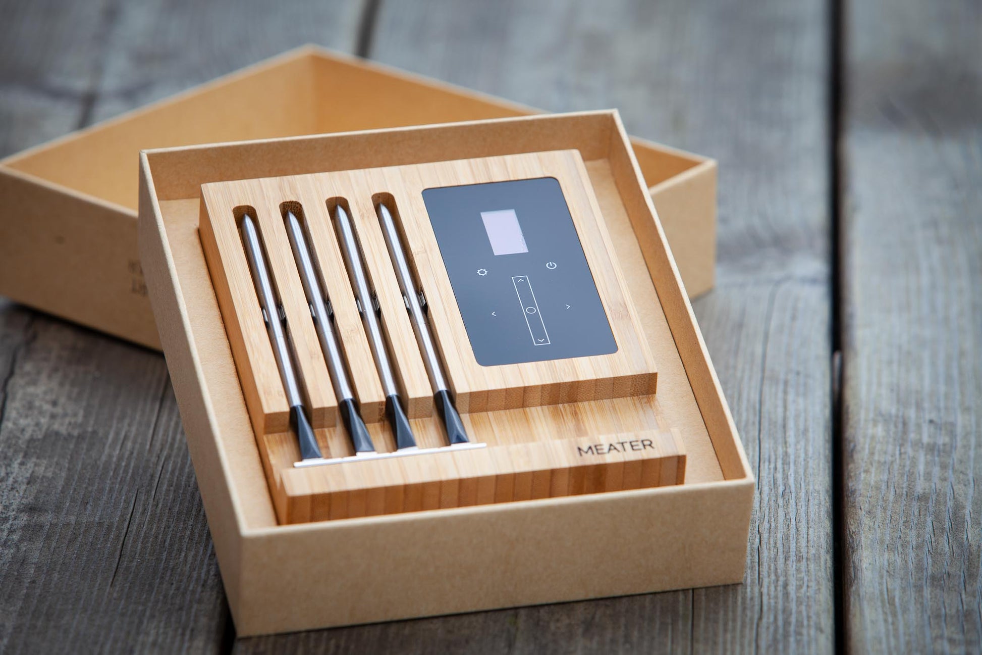 Världens första helt trådlösa interna kötttermometer. Temperaturmätaren har två temperatursensorer, med vilka mobilapplikationen installerad på telefonen hjälper dig att förbereda den perfekta steken eller grillat kött. Kött är mycket lätt att använda. Anslutningen fungerar via Bluetooth och Wi-Fi-nätverk. Med Meater-appen kan du även dela anslutningen till andra telefoner i Wi-Fi-nätverket. Telefonen signalerar när köttet är klart.