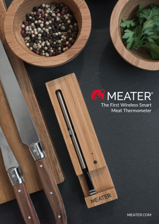Världens första helt trådlösa interna kötttermometer. Temperaturmätaren har två temperatursensorer, med vilka mobilapplikationen installerad på telefonen hjälper dig att förbereda den perfekta steken eller grillat kött. Kött är mycket lätt att använda. Anslutningen fungerar via Bluetooth. Med Meater-appen kan du även dela anslutningen till andra telefoner i Wi-Fi-nätverket. Telefonen signalerar när köttet är klart.