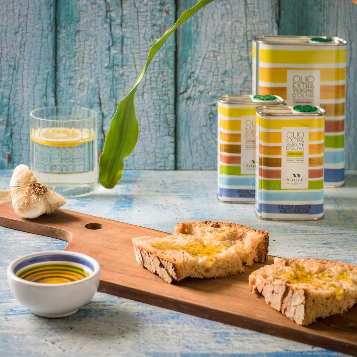 Olivolja med en intensiv fruktig smak, gjord av kallpressade Coratina-oliver – en sort som kommer från regionen Apulien i Italien, där Muraglias olivlundar ligger.