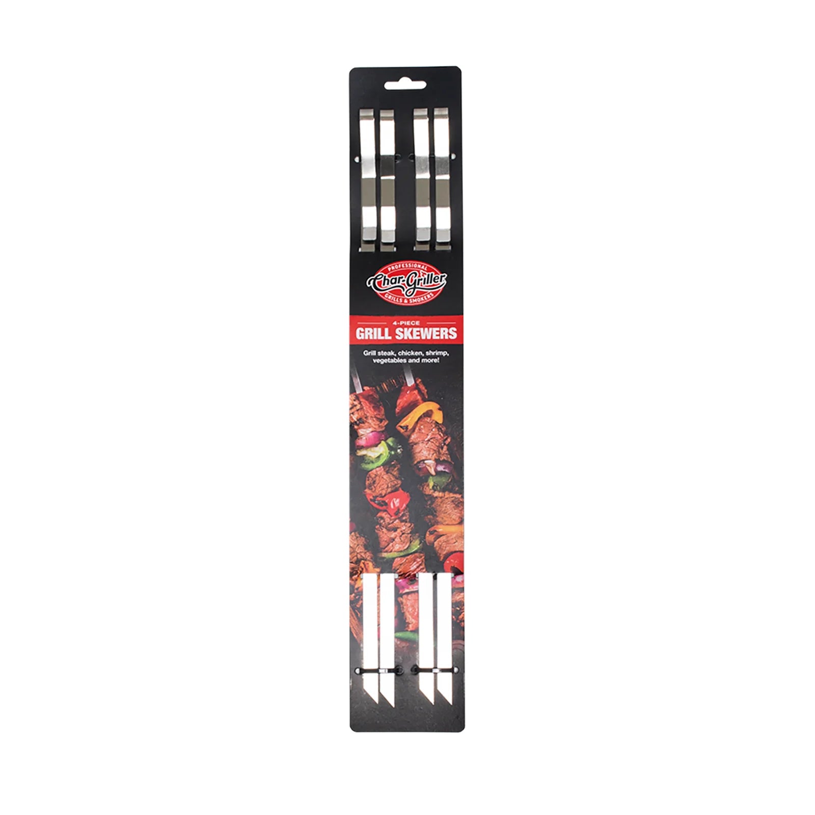 Vad är bättre än en perfekt förkolnad kabob direkt från din Char-Griller? Ingenting? Vi vet det. Förbered enkelt de perfekta grillspetten när du vill med dessa stålspett i rostfritt stål i 4 delar som tål maskindisk.