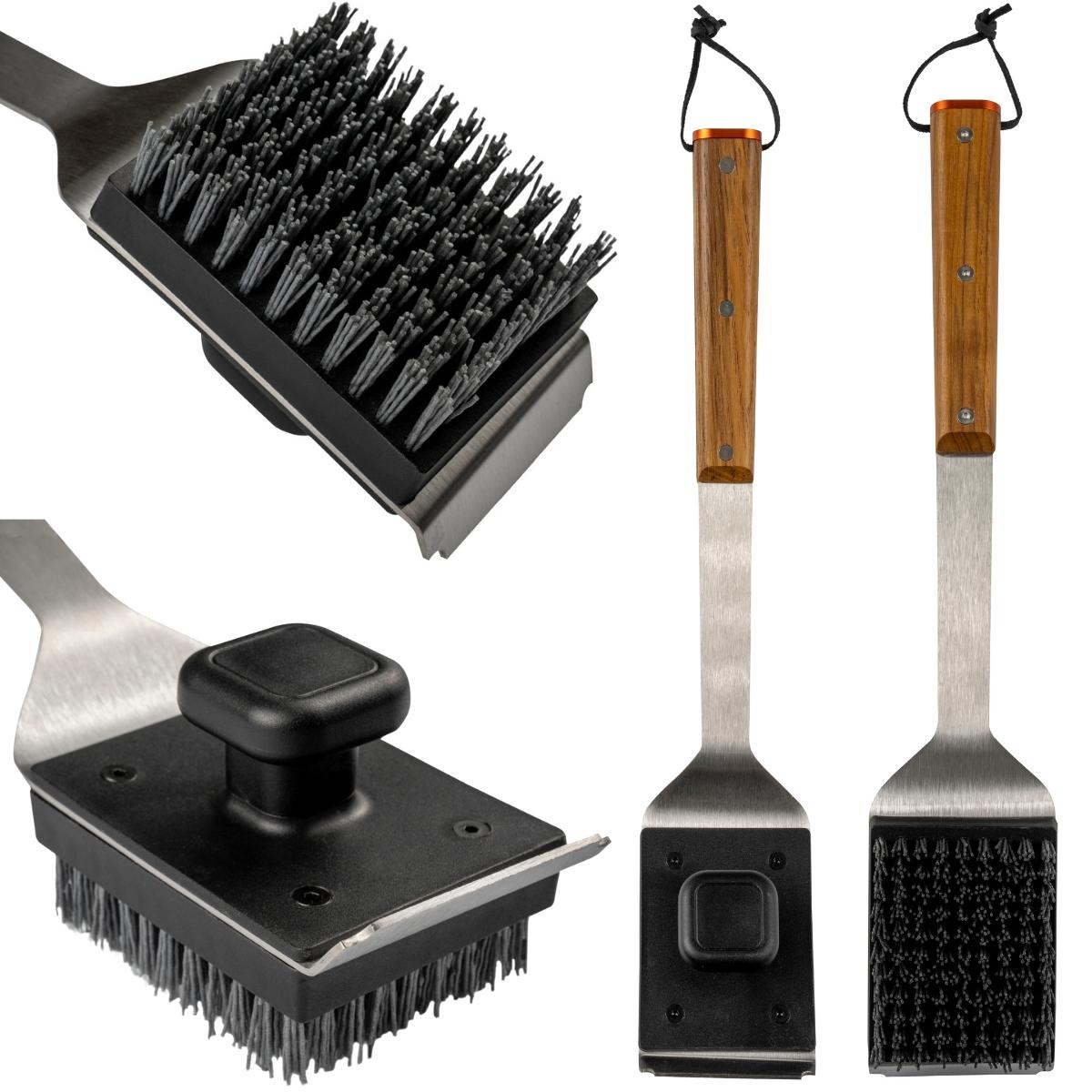 Denna borste är det säkraste sättet att rengöra kylda grillgaller eftersom Traegers grillrengöringsborste har nylonborst som inte skadar grillgaller eller kommer in i maten.