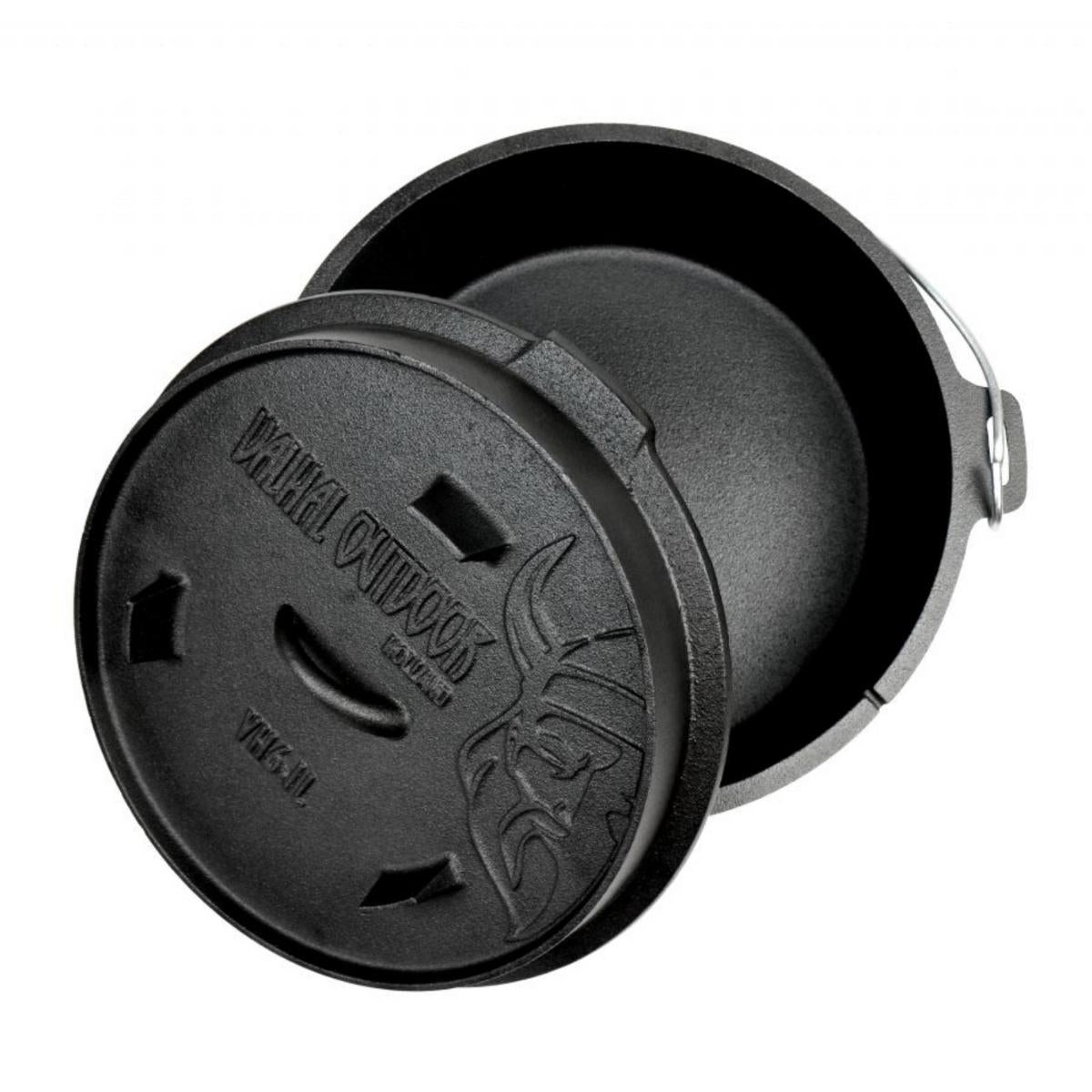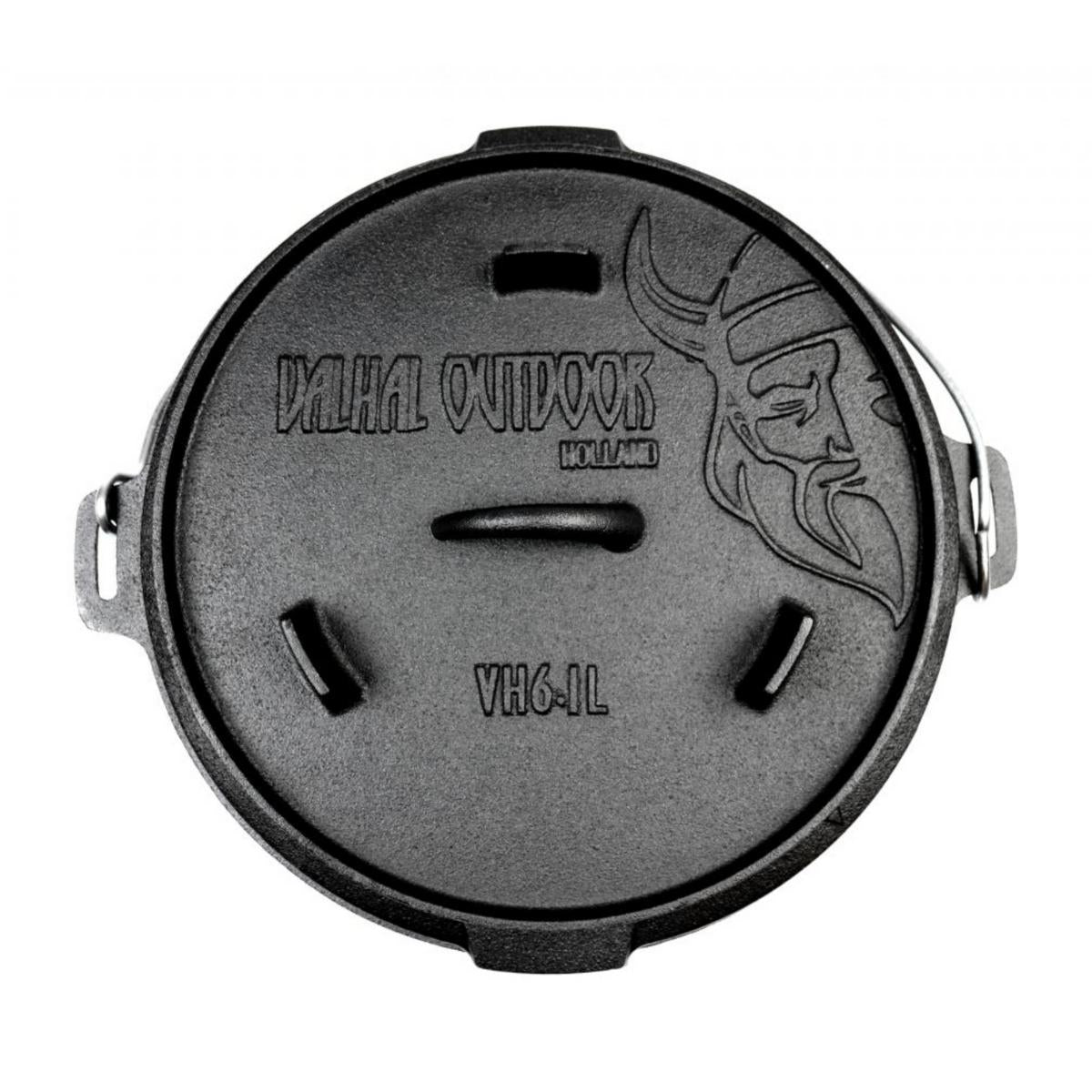 Designen på denna holländska ugn är väl genomtänkt, och stor vikt har lagts vid dess mångsidiga användning och användarvänlighet. VH6.1L+ är en holländsk ugn med fötter i botten. Benen i botten gör att du kan placera den direkt ovanför värmekällan utan att kväva värmen. Detta är perfekt när du vill använda holländska ugnen på det gamla sättet med värme uppifrån och värme underifrån. Du placerar sedan holländska ugnen direkt över till exempel briketter och lägger briketter på locket. På så sätt kan du använda din stekpanna som en ugn. Du kan baka de läckraste bröden, men även läckra grytor. Locket på holländska ugnen kan också användas som en stekpanna, vilket innebär att du faktiskt har 2 i 1. En holländsk ugn och en stekpanna. Ett utmärkt sätt att starta varje matlagningsäventyr utomhus.