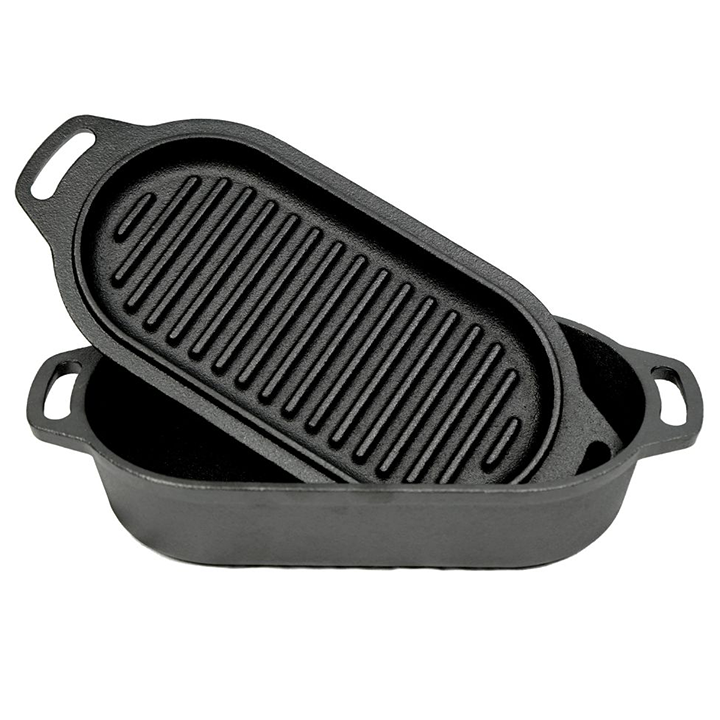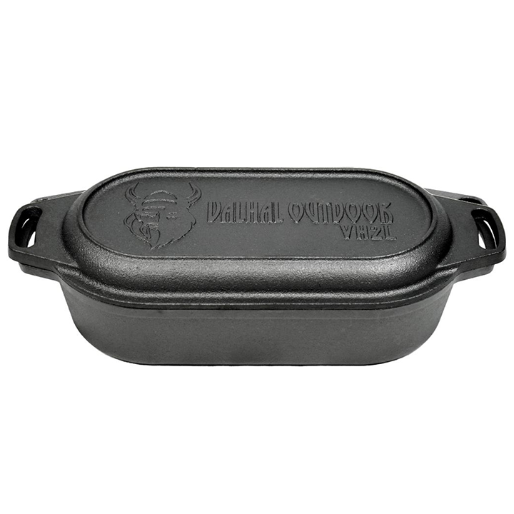VALHAL gryta i gjutjärn med grilllock, oval 2 L