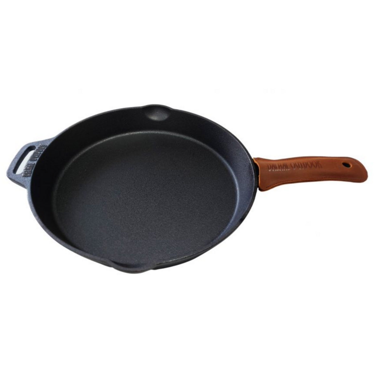 Gjutjärn är ett material som håller värmen mycket bra och kan därför bli mycket varmt. Valhal Outdoor har utvecklat VH.SLEEVE för att göra det lite enklare att laga mat med dina gjutjärnspannor med handtag, utan att förringa dess tuffa karaktär. Ett äkta läderöverdrag för handtaget på din stekpanna. Det passar runt Valhal Outdoors stekpannor med handtag, men egentligen runt alla stekpannhandtag med liknande dimensioner.