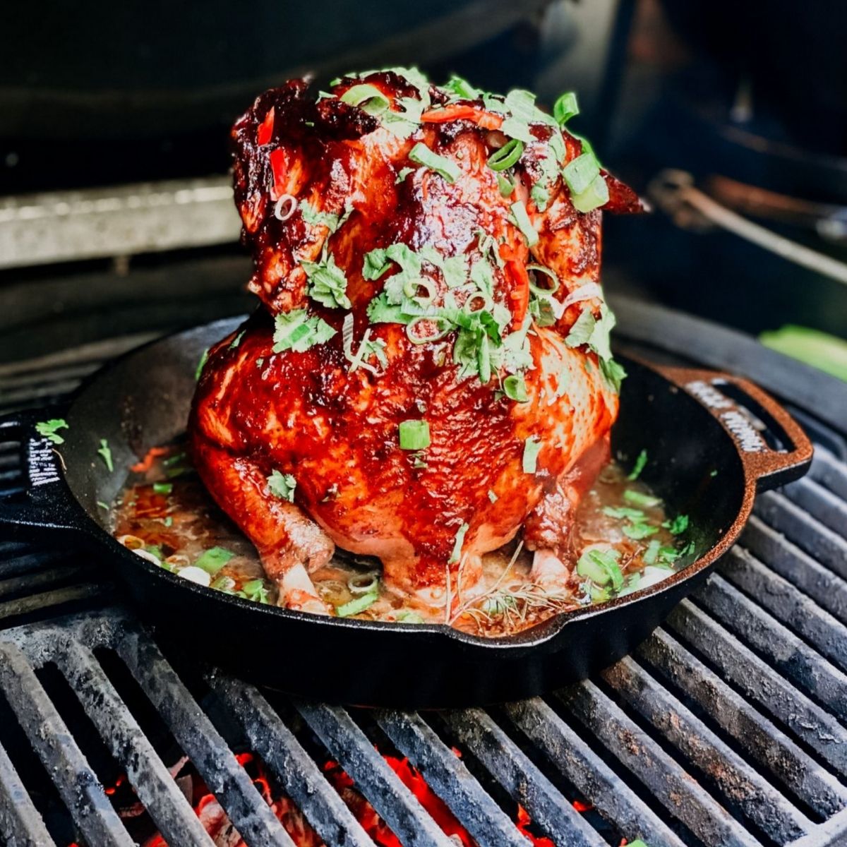 Stekpannans mångsidighet återspeglas i dess design, vilket gör att du inte bara kan tillaga perfekt saftig kyckling, utan också samtidigt placera tillbehör som potatis runt pannan. Denna allt-i-ett-metod gör att du enkelt, snabbt och med bara en stekpanna kan laga en hel måltid, vilket ger dig mer tid att njuta av naturen.