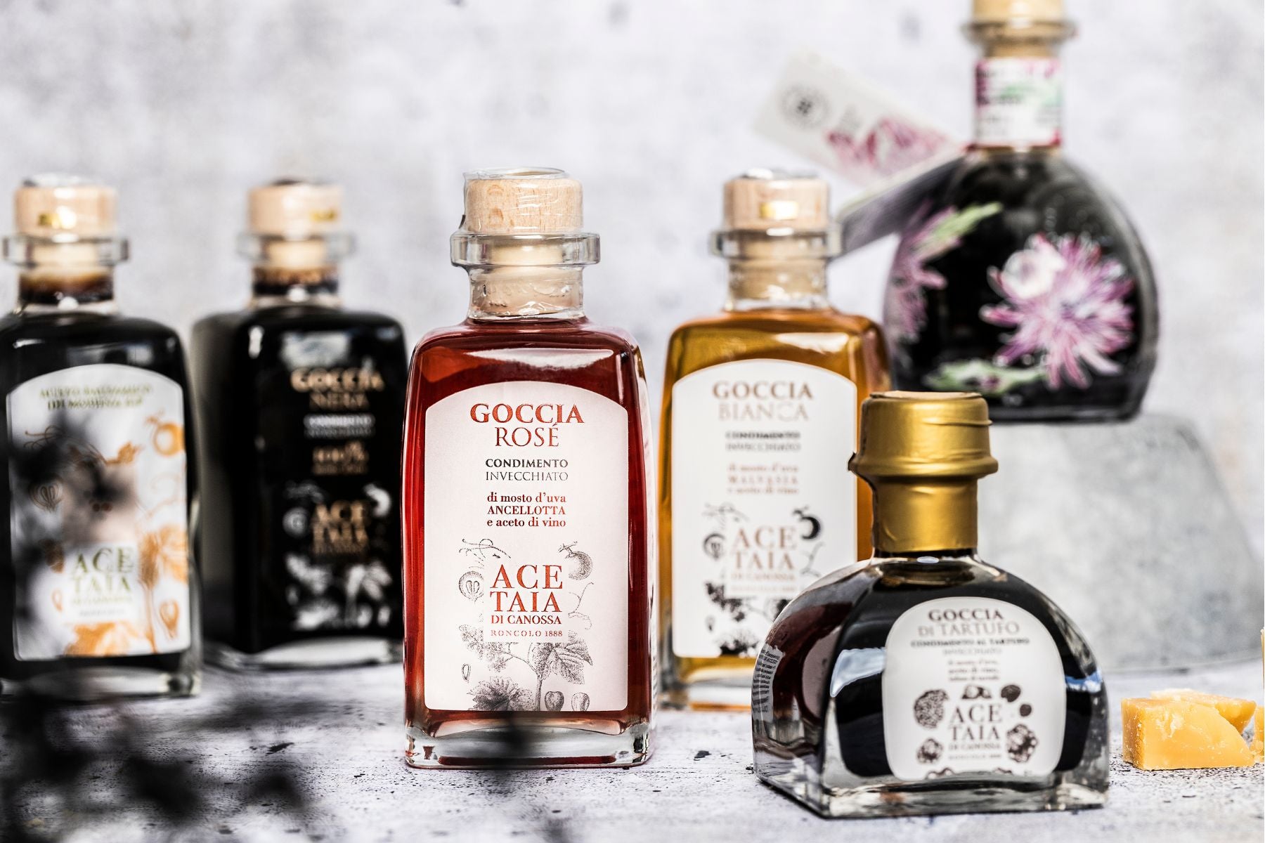 Rik och fyllig. Den mest intensiva smaken av balsamvinäger i Goccia-serien.